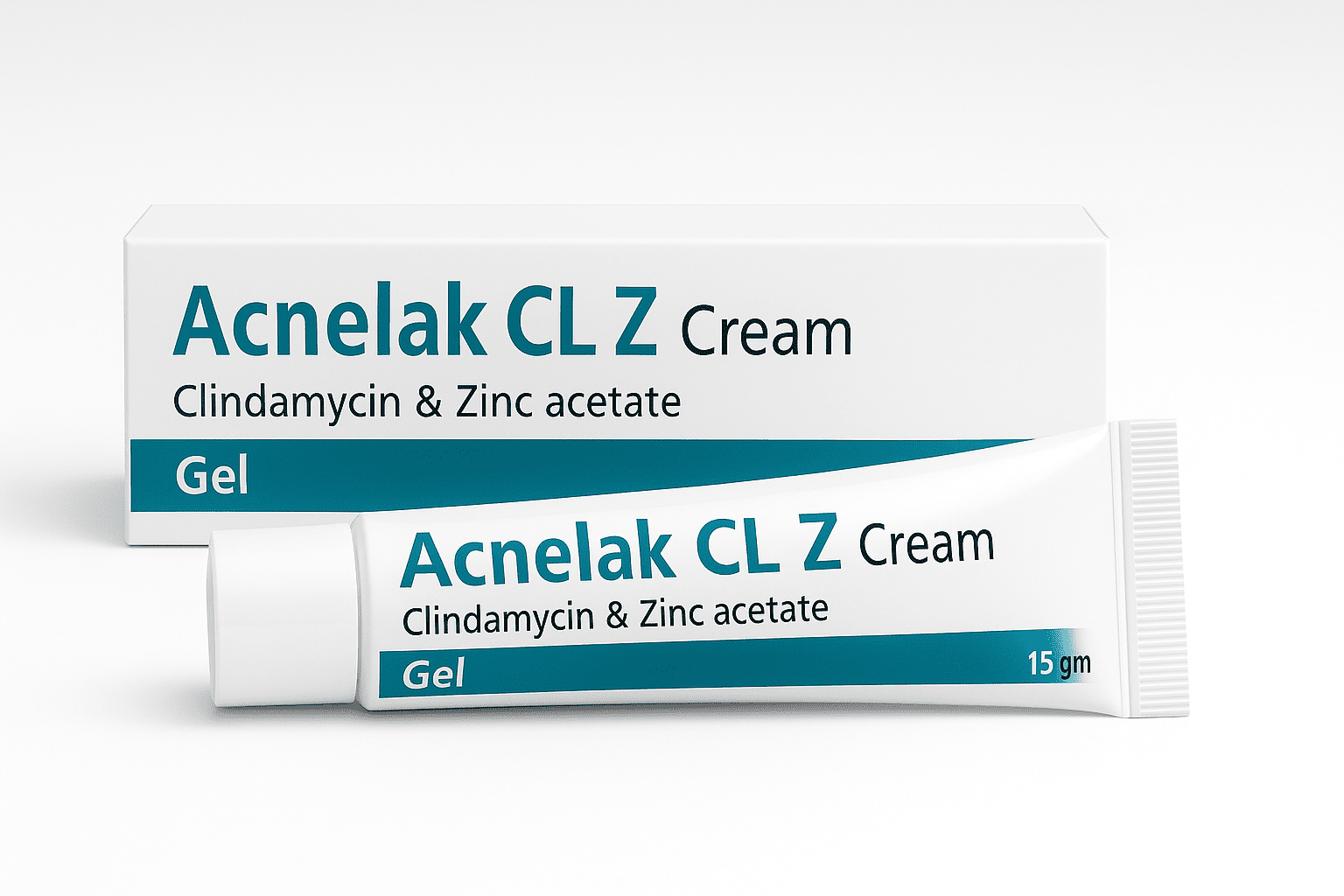 Acnelak CL Z Cream is a combination gel designed to treat acne and related skin issues. It contains Clindamycin Phosphate, an antibiotic that helps reduce acne-causing bacteria, Tretinoin, a retinoid that promotes skin cell turnover, and Zinc, which helps to control excess oil and reduces inflammation. This powerful combination works together to help prevent acne breakouts, reduce inflammation, and promote clearer skin.