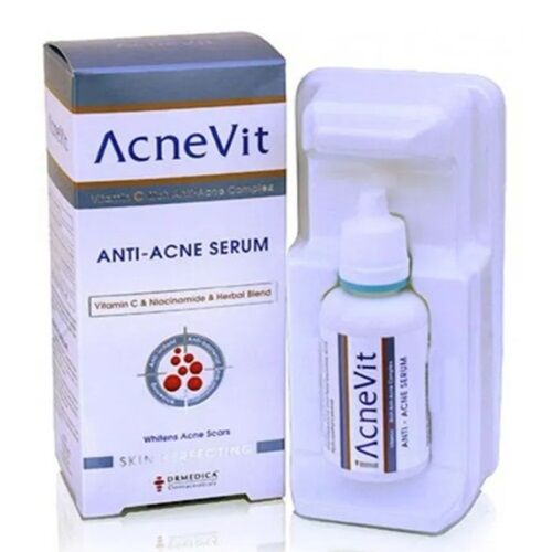 Acnevit Anti Acne Serum is a specially formulated skincare solution designed to combat acne, reduce breakouts, and improve skin clarity. Infused with powerful anti-inflammatory and antibacterial ingredients, this serum helps unclog pores, control excess oil, and promote a healthier, blemish-free complexion. It is enriched with vitamins and antioxidants to soothe irritated skin and prevent acne scars. Suitable for all skin types, including sensitive skin.