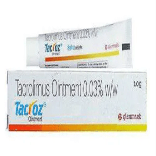 Tacroz 0.03% (10 gm) is a topical ointment used to treat moderate to severe atopic dermatitis (eczema) and other inflammatory skin conditions. It contains tacrolimus, an immunosuppressant that works by inhibiting the production of certain chemicals in the skin that cause inflammation. Tacroz helps reduce symptoms such as itching, redness, and swelling, providing relief from flare-ups of eczema without the use of steroids.